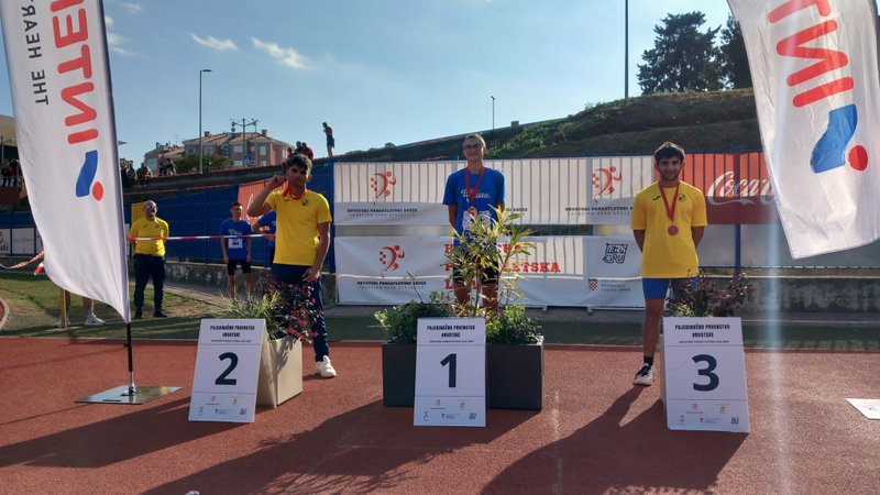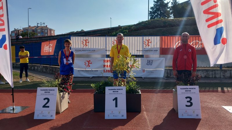 U subotu prvog dana natjecanja titulu državnog prvaka u seniorskoj konkurenciji osvojio je Antonio Kosmat u dvije discipline. Na 100 m T 36-37-38 12,55 sek i 400 m T 36-38 1:00 74 sek